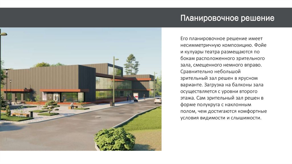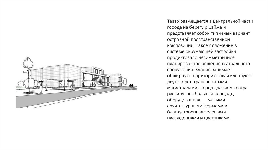 Театр размещается в центральной частигорода на берегу р.Сайма и