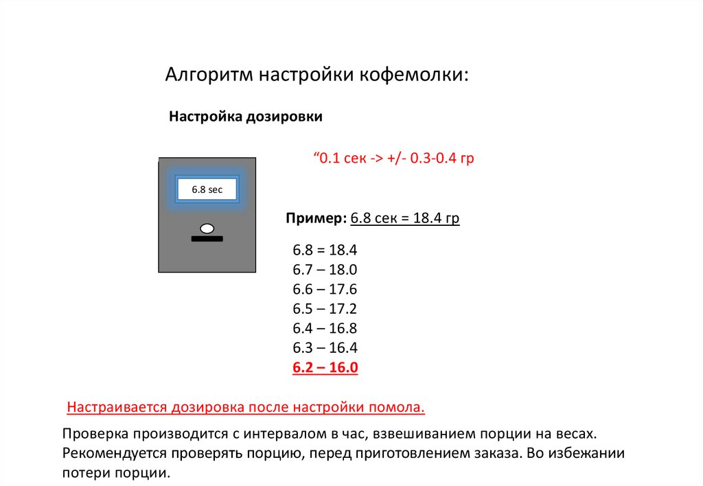 Алгоритм настройки кофемолки:Настройка дозировки