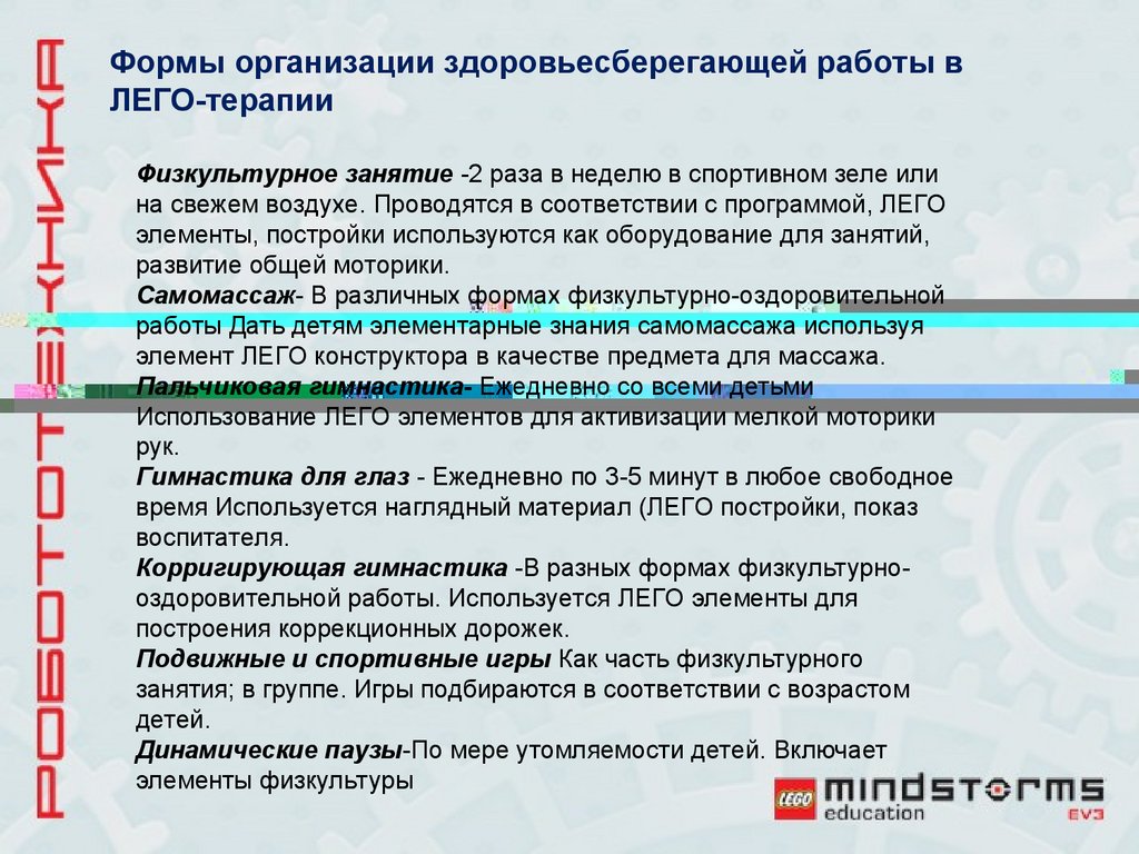 Формы организации здоровьесберегающей работы вЛЕГО-терапии