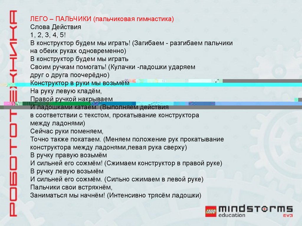 ЛЕГО – ПАЛЬЧИКИ (пальчиковая гимнастика)Слова Действия