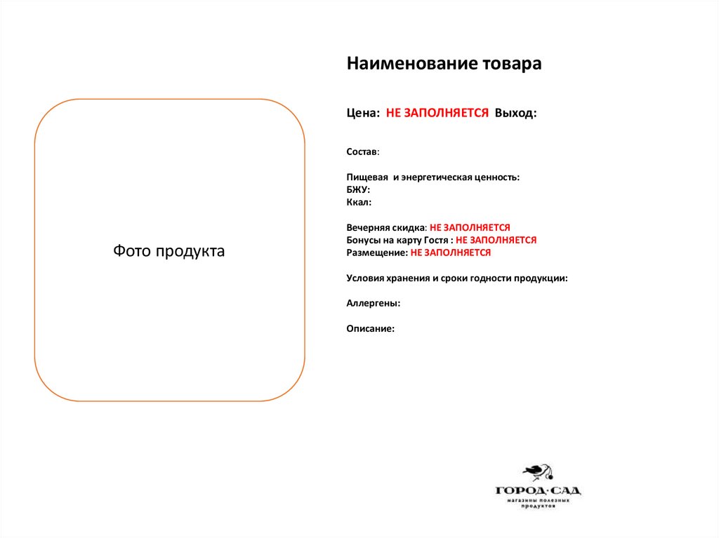 Город-сад. Шаблон. Ввод новинок полки