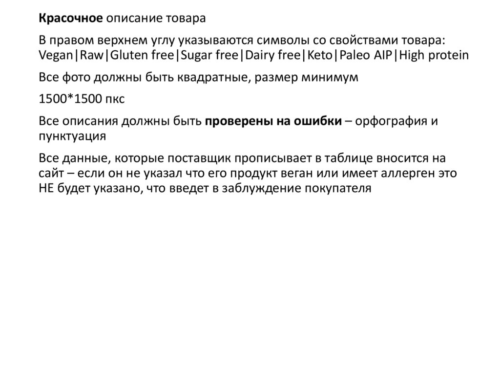 Все описания должны быть проверены на ошибки – орфография и