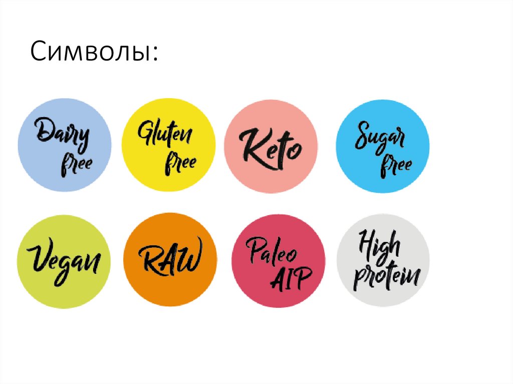 Красочное описание товараВ правом верхнем углу указываются символы со свойствами товара: