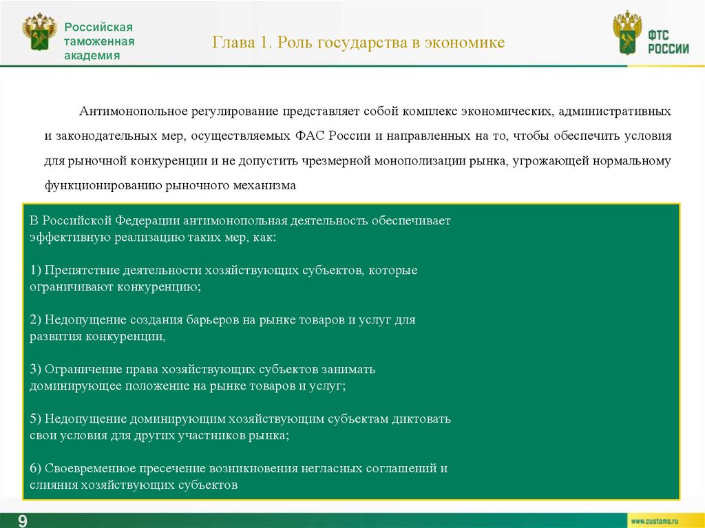 - борьба с монополизацией.
