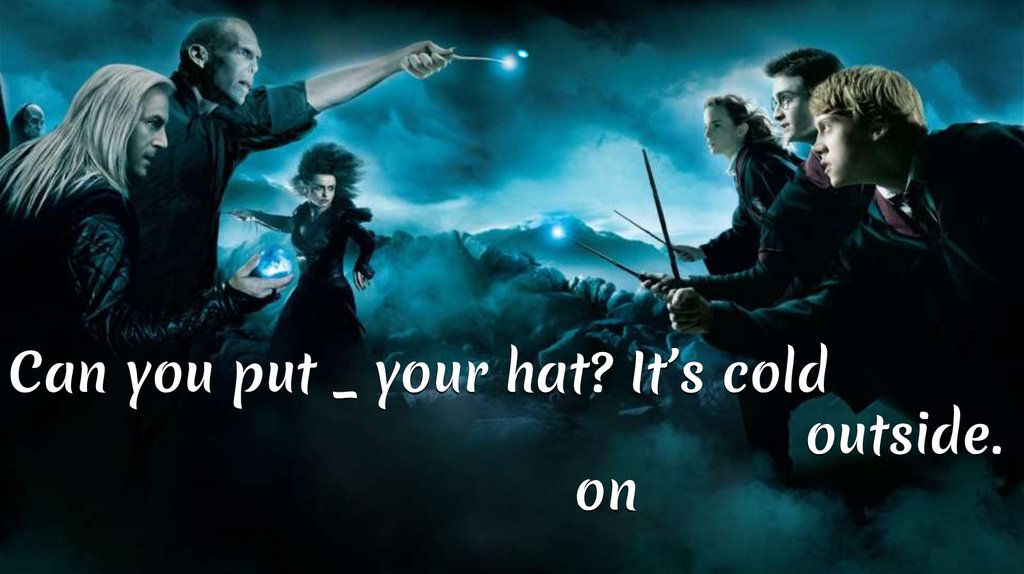 Can you put _ your hat? It’s coldoutside.