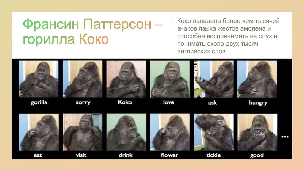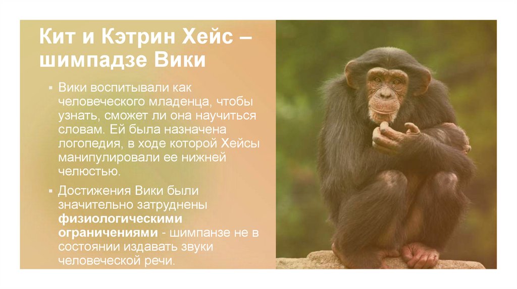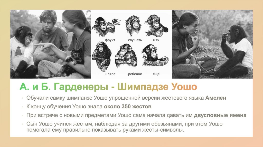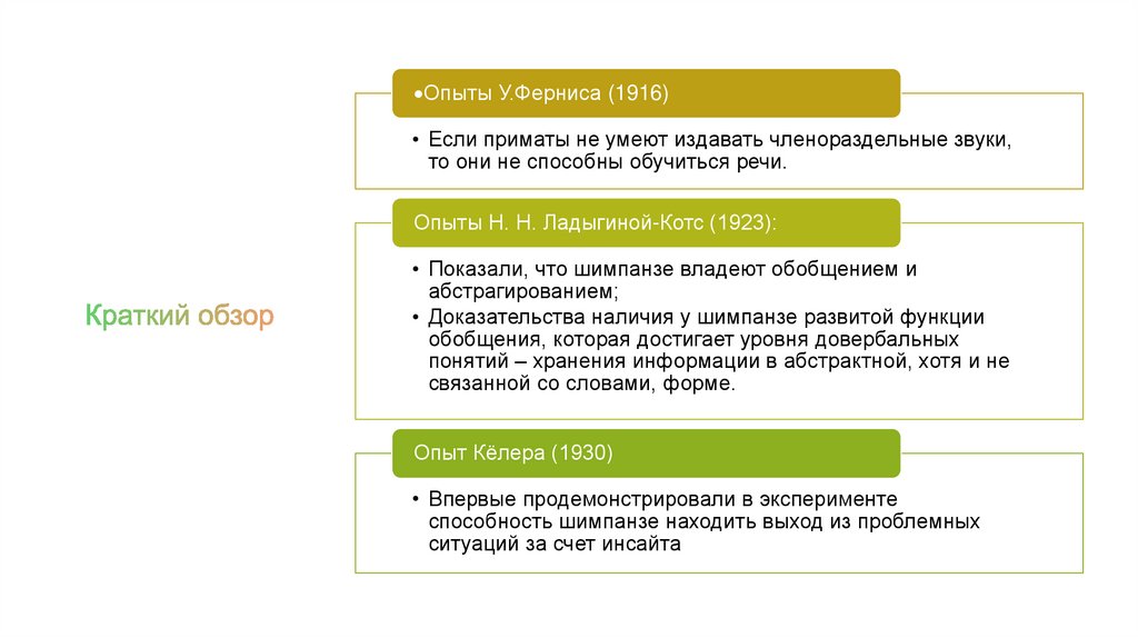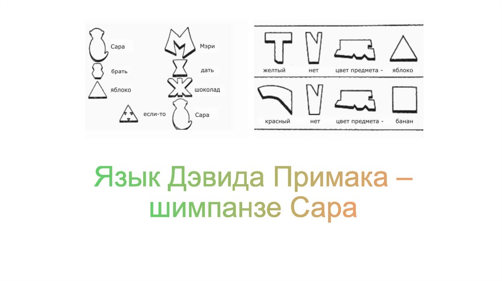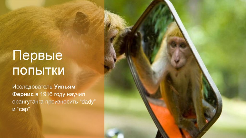 Опыты У.Ферниса (1916)• Если приматы не умеют издавать членораздельные звуки,