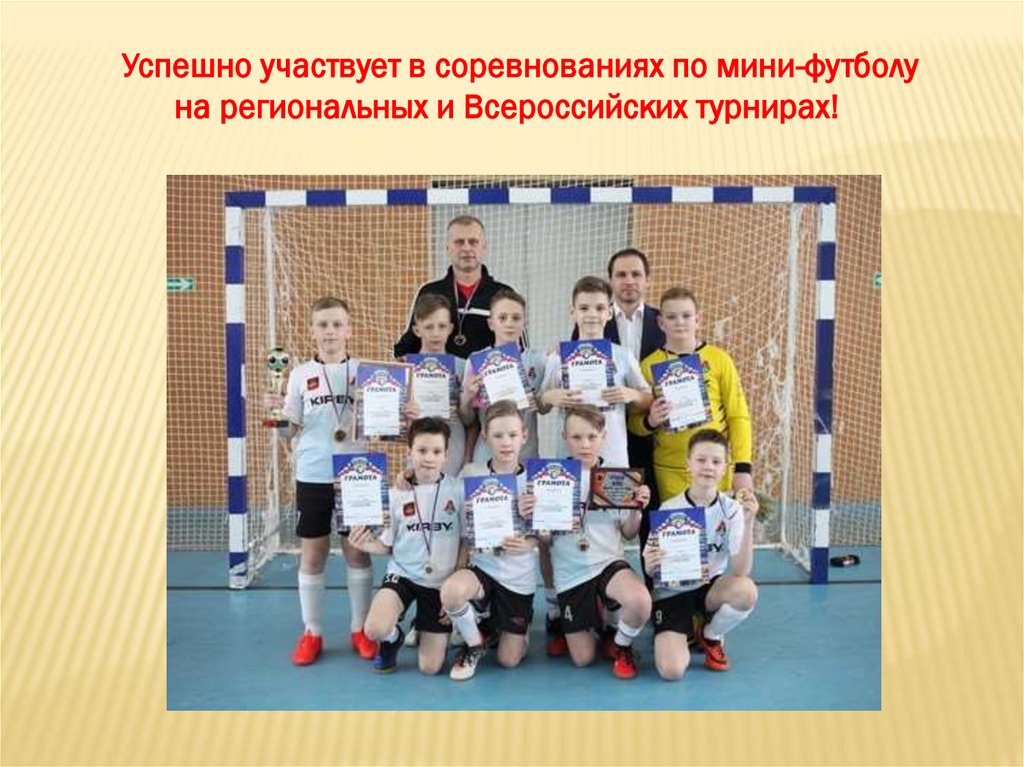 Успешно участвует в соревнованиях по мини-футболуна региональных и Всероссийских турнирах!