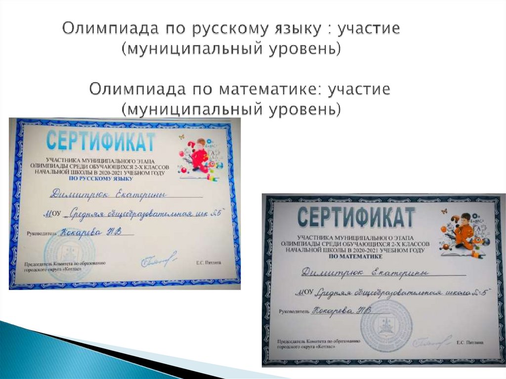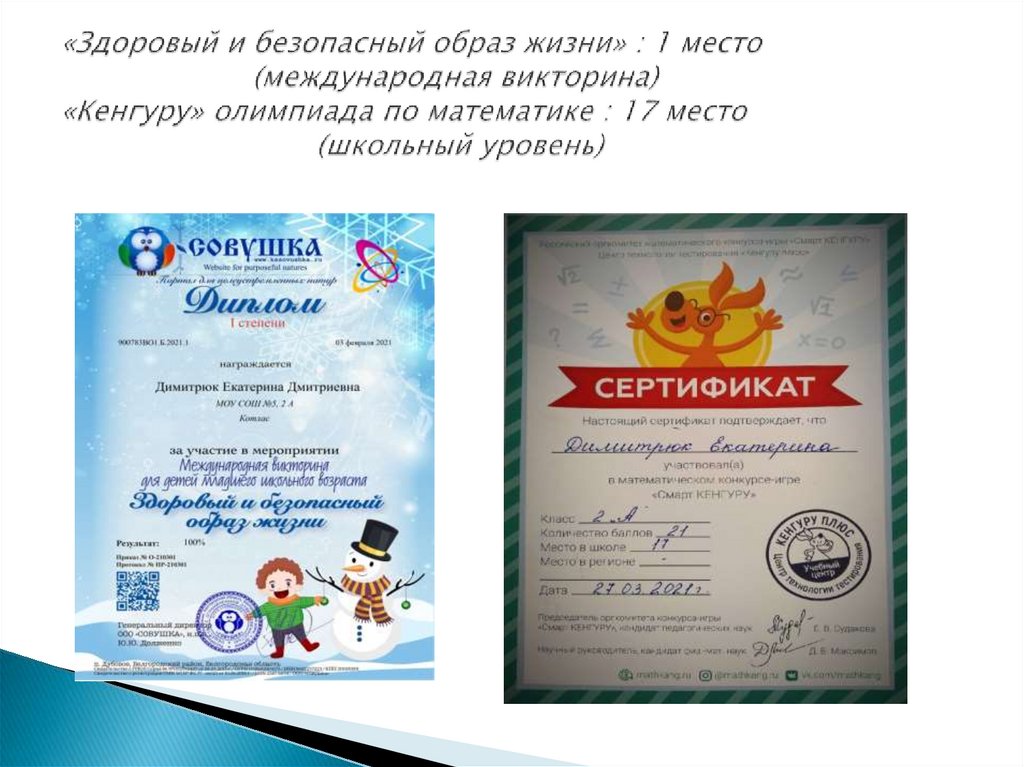 Школьный этап Всероссийской олимпиады школьниковдля 1-3 классов по математике – 1 место.