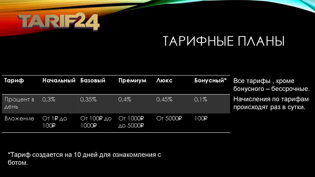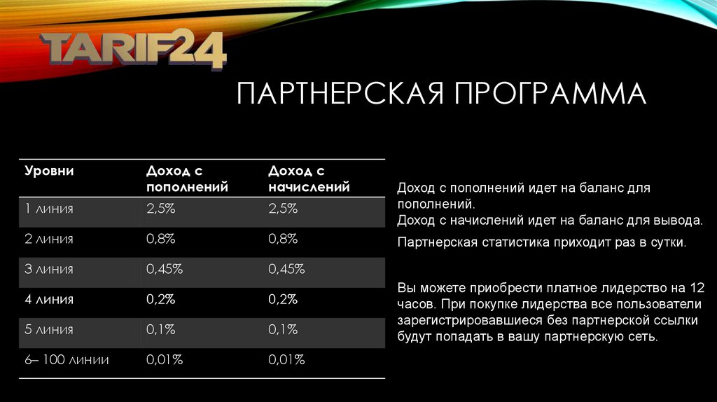 Тариф 24. Проект для активного и пассивного заработка инвесторов