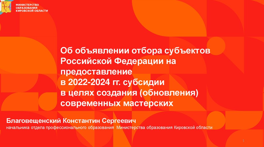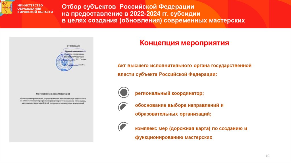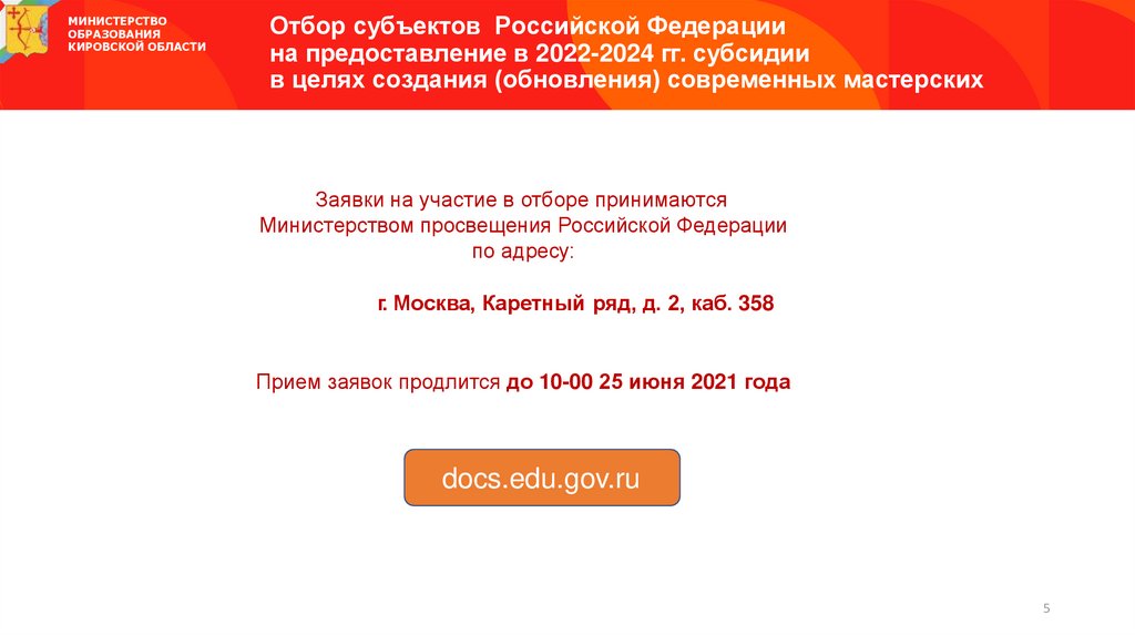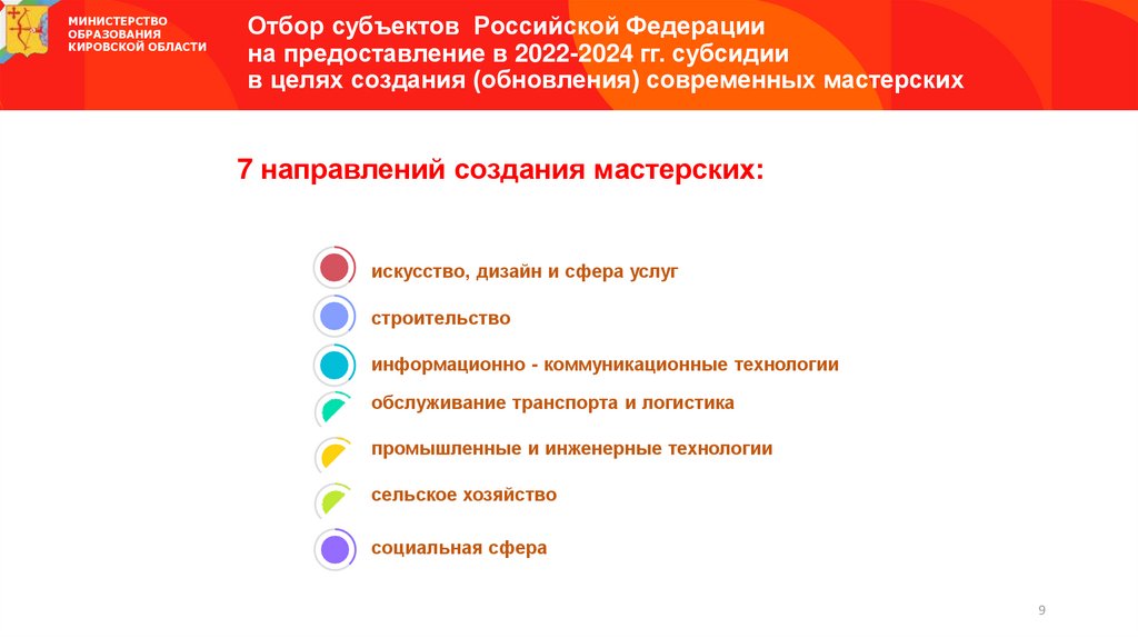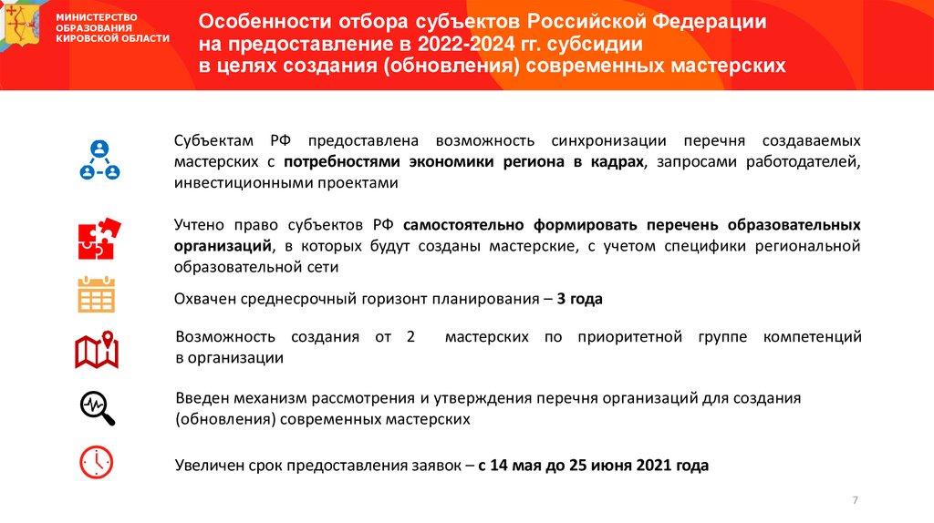 Отбор субъектов РФ на предоставление в 2022-2024 гг. субсидии в целях создания мастерских