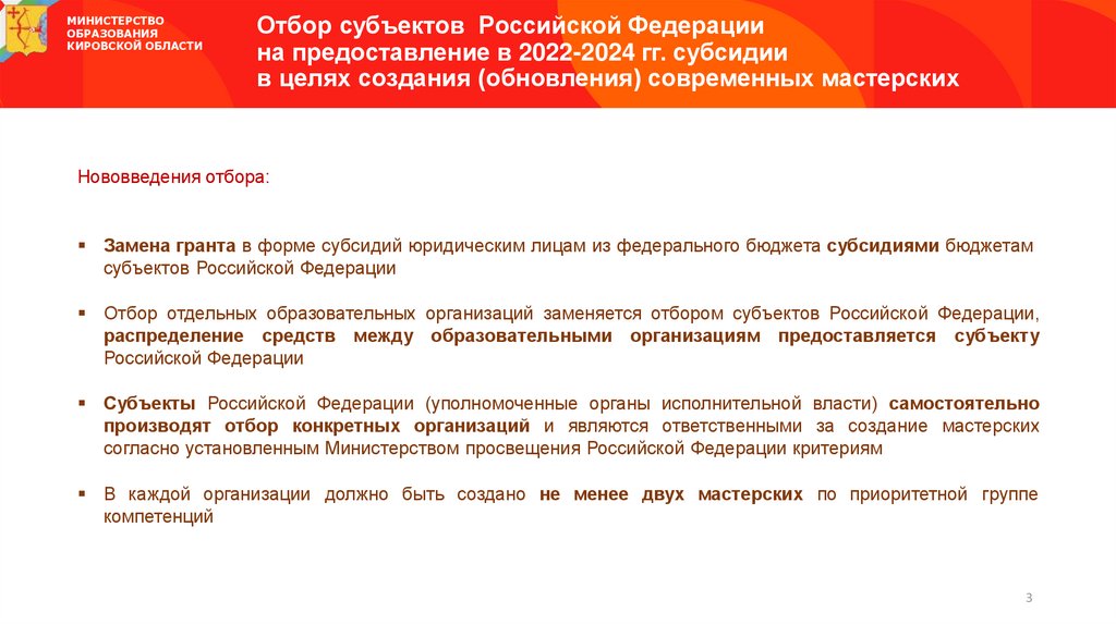 Отбор отдельных образовательных организаций заменяется отбором субъектов Российской Федерации,