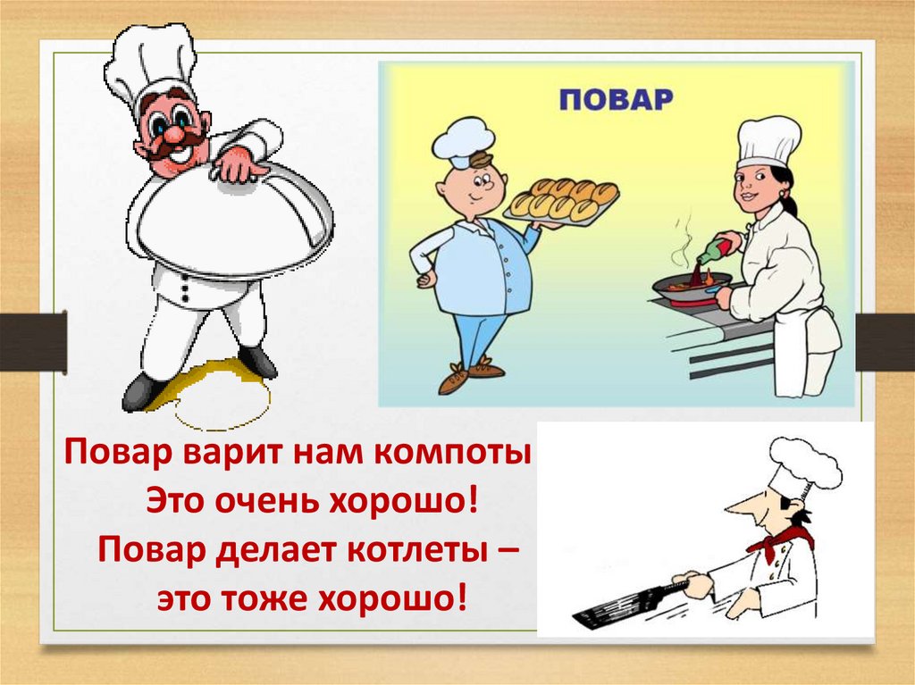 Повар варит нам компоты –Это очень хорошо!