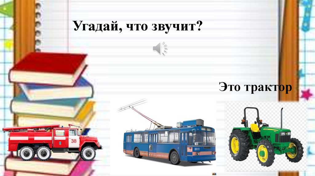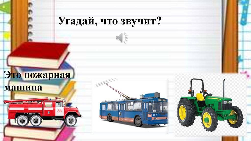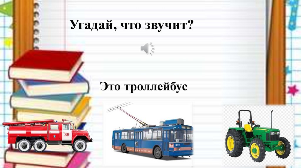 Различение и опознавание городских шумов при выборе из трёх (троллейбус, пожарная машина, трактор)