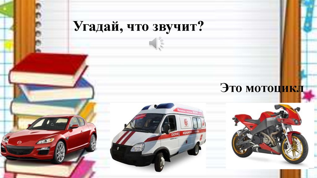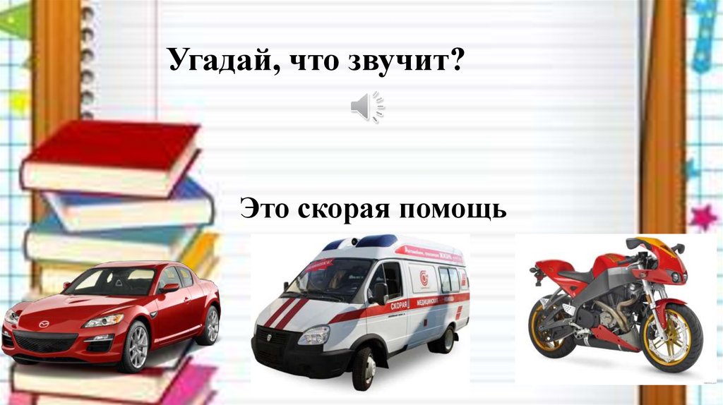 Различение и опознавание городских шумов при выборе из трёх (легковой автомобиль, скорая помощь, мотоцикл)
