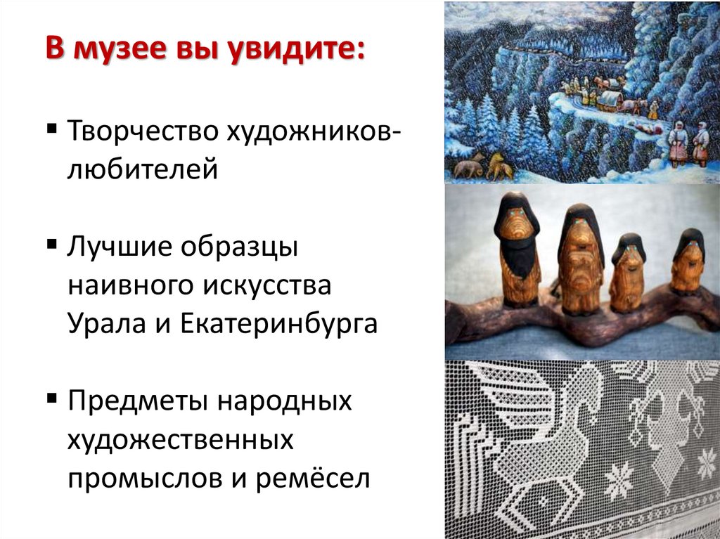 В музее вы увидите:Творчество художниковлюбителей