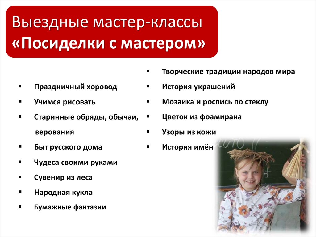 Выездные мастер-классы«Посиделки с мастером»