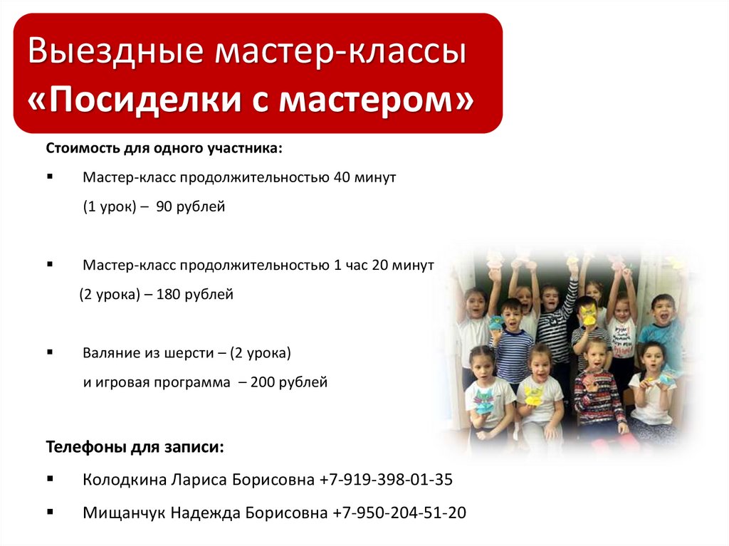 Мастер-класс продолжительностью 40 минут