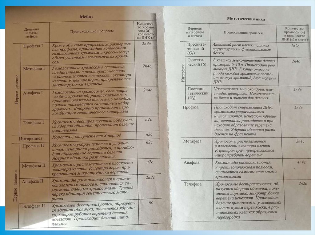 Биозначение: поддержание постоянства числа хромосом, половое размножение, различные