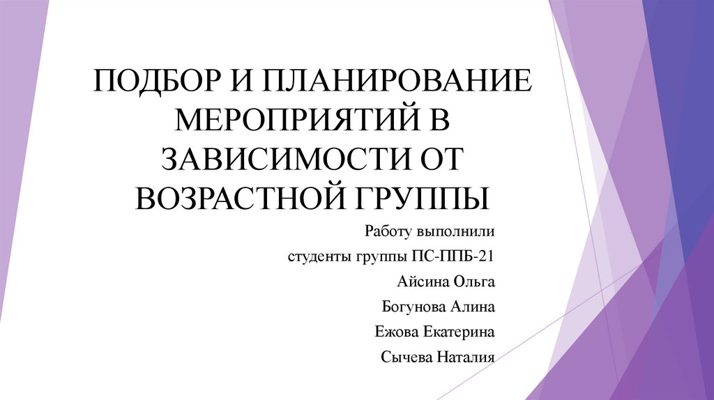 Подбор и планирование мероприятий в детском саду в зависимости от возрастной группы