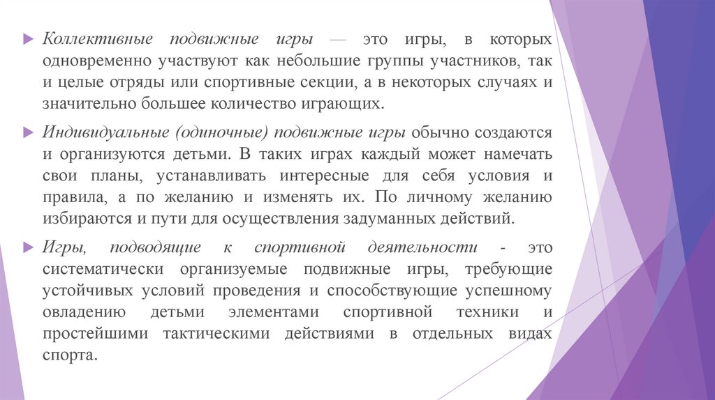 Коллективные подвижные игры — это игры, в которыходновременно участвуют как небольшие группы участников, так