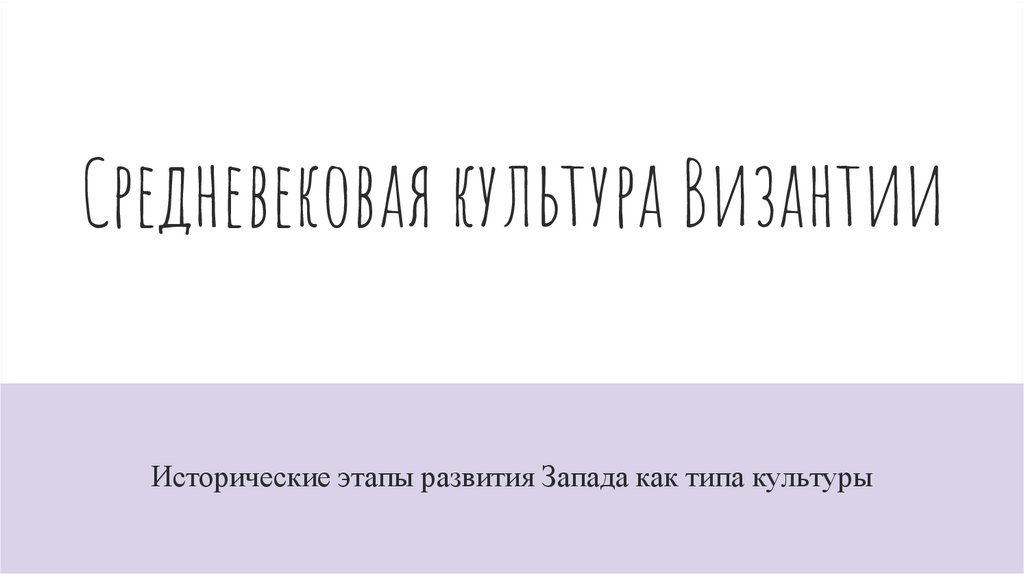 Cредневековая культура ВизантииИсторические этапы развития Запада как типа культуры
