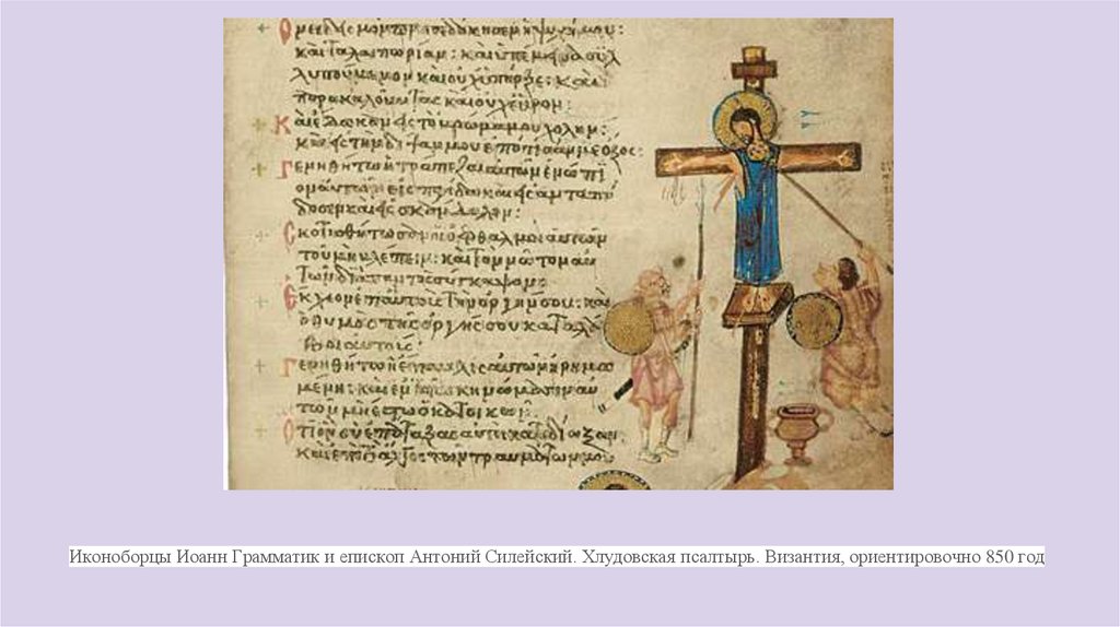 Иконоборцы Иоанн Грамматик и епископ Антоний Силейский. Хлудовская псалтырь. Византия, ориентировочно 850 год12.