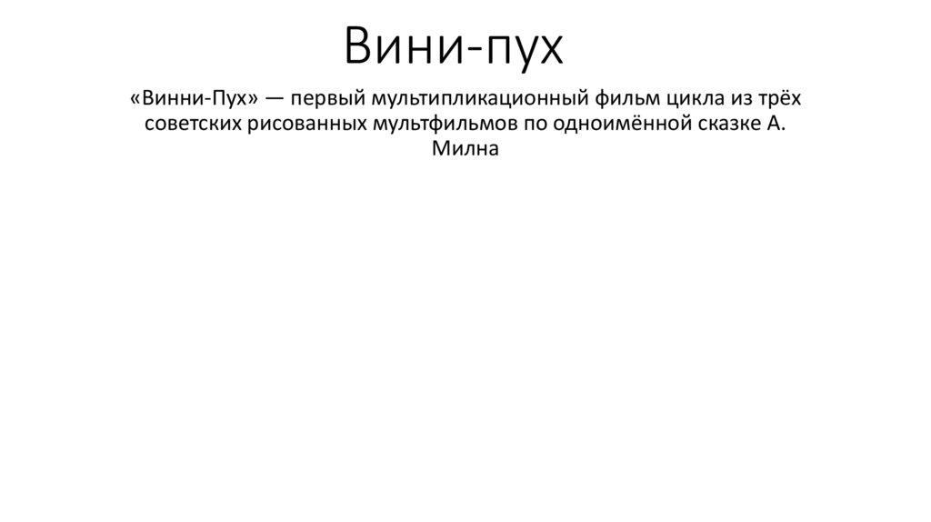 Вини-пух«Винни-Пух» — первый мультипликационный фильм цикла из трёх