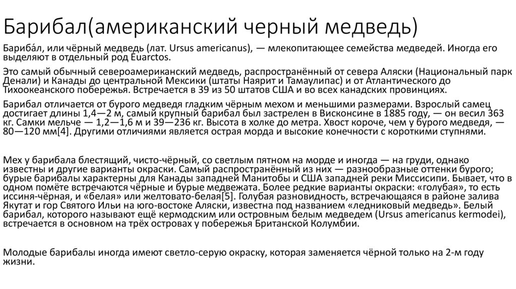 Барибал(американский черный медведь)Бариба́л, или чёрный медведь (лат. Ursus americanus), — млекопитающее семейства медведей. Иногда его