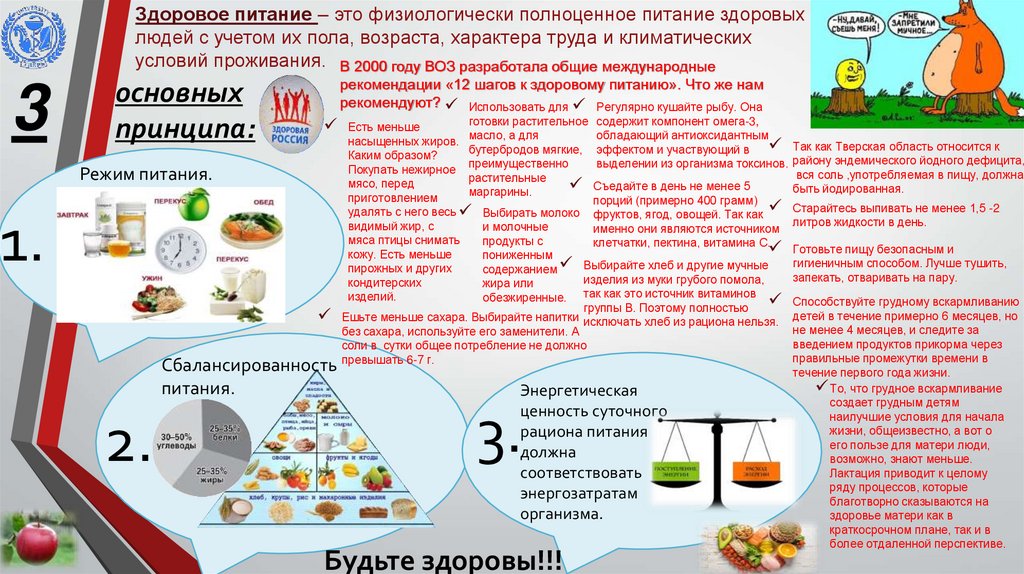 Здоровое питание – это физиологически полноценное питание здоровыхлюдей с учетом их пола, возраста, характера труда и климатических