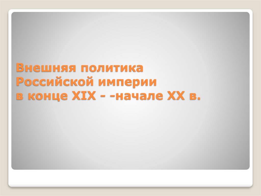 Внешняя политика Российской империи в конце XIX - начале ХХ веков