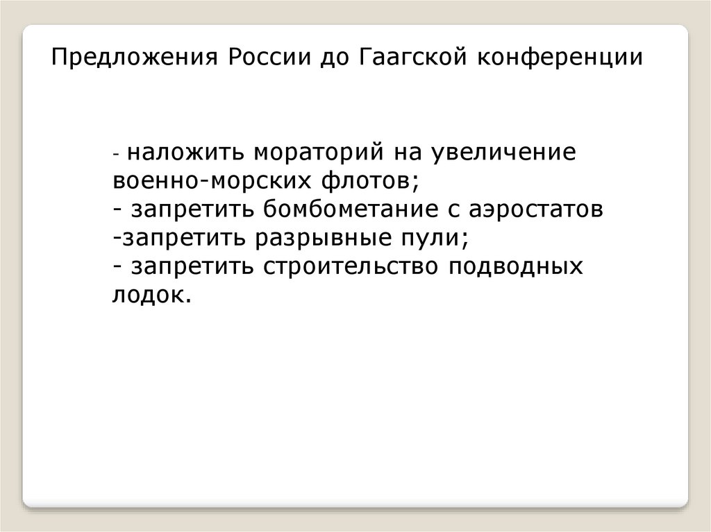 Предложения России до Гаагской конференцииналожить мораторий на увеличение