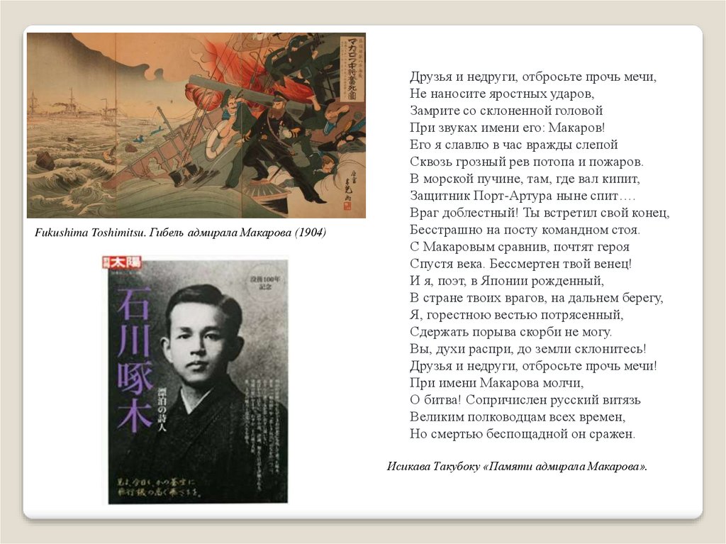 Fukushima Toshimitsu. Гибель адмирала Макарова (1904)Друзья и недруги, отбросьте прочь мечи,