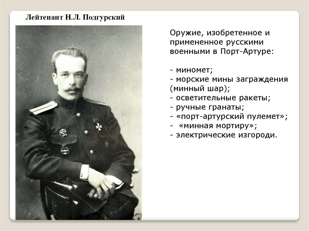 Лейтенант Н.Л. ПодгурскийОружие, изобретенное и