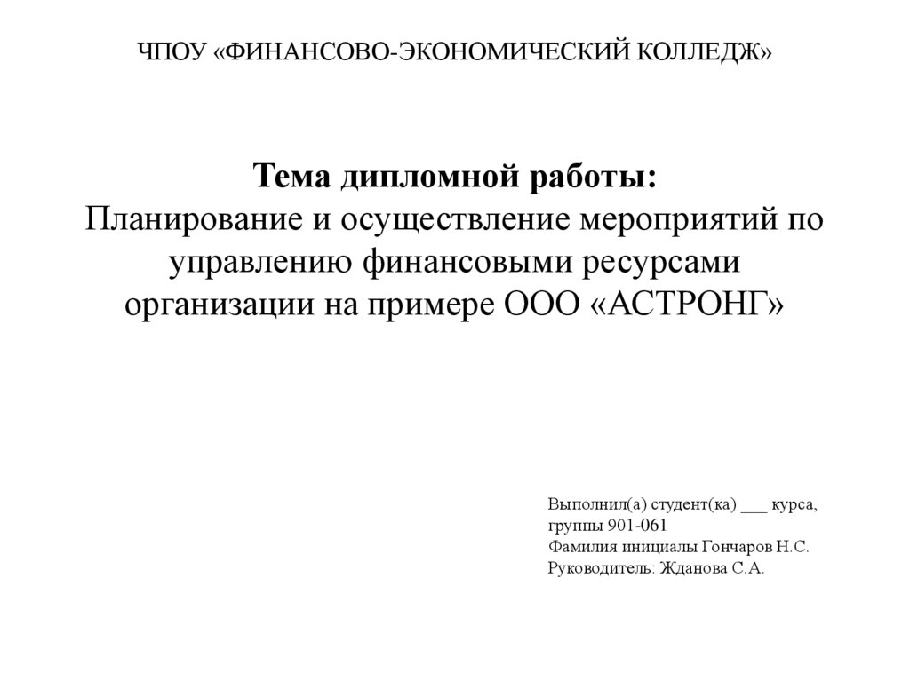 ЧПОУ «ФИНАНСОВО-ЭКОНОМИЧЕСКИЙ КОЛЛЕДЖ»Тема дипломной работы: