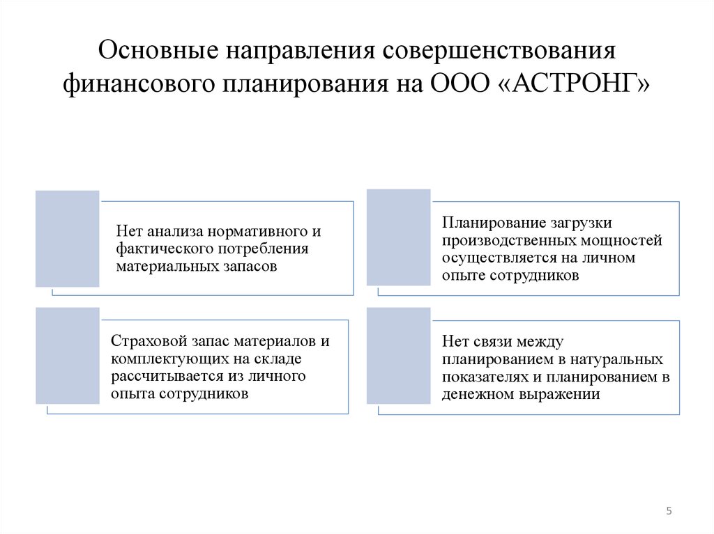 Основные направления совершенствованияфинансового планирования на ООО «АСТРОНГ»