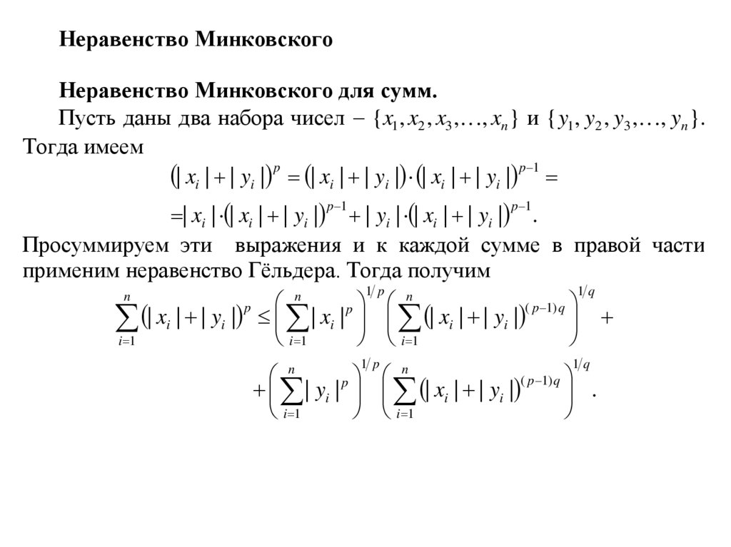 Неравенство МинковскогоНеравенство Минковского для сумм.