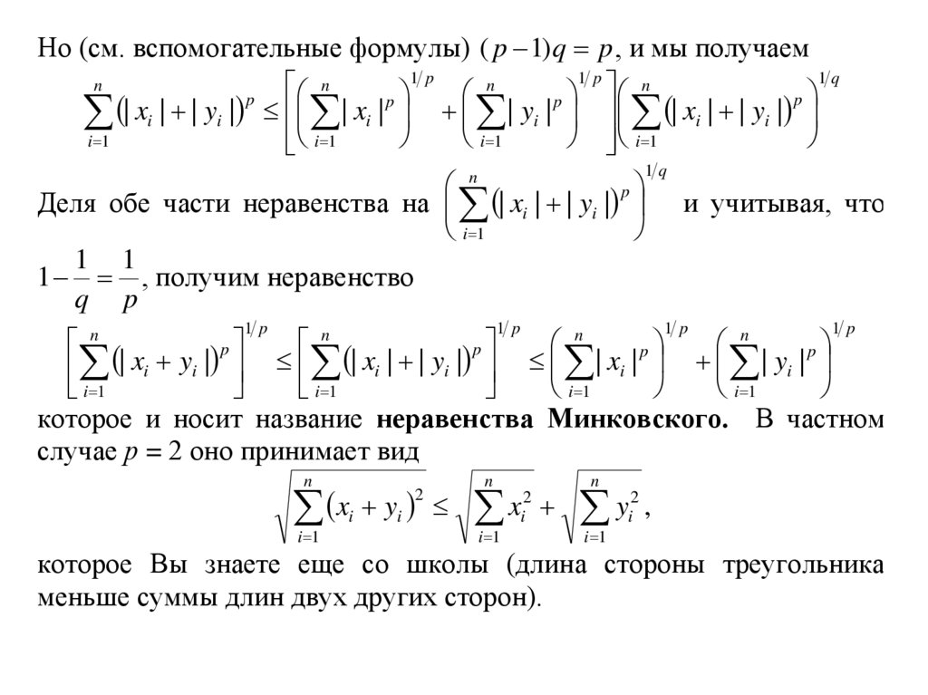 которое и носит название неравенства Минковского. В частном