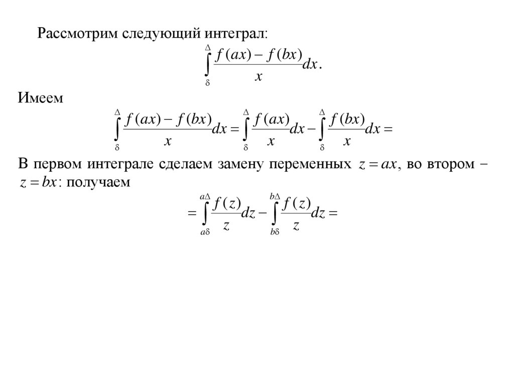Рассмотрим следующий интеграл:f ( ax) f (bx )