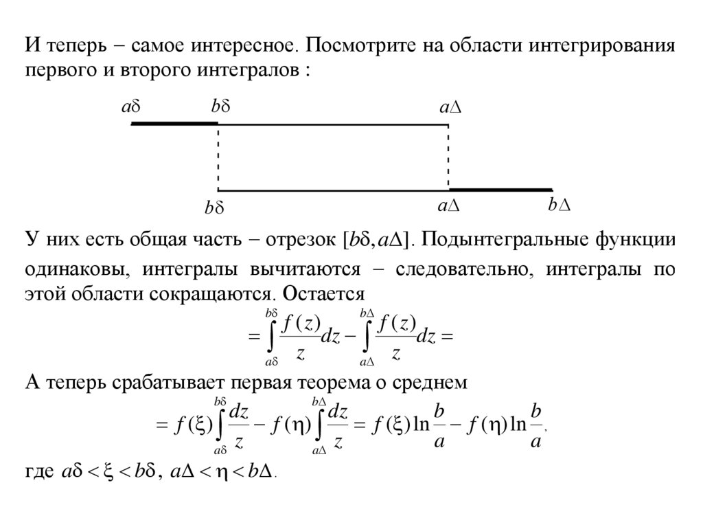 У них есть общая часть отрезок [b , a ] . Подынтегральные функции