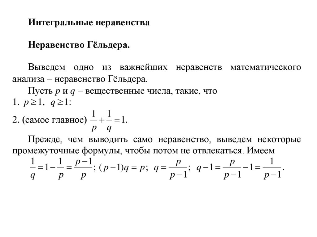 Интегральные неравенстваНеравенство Гёльдера.