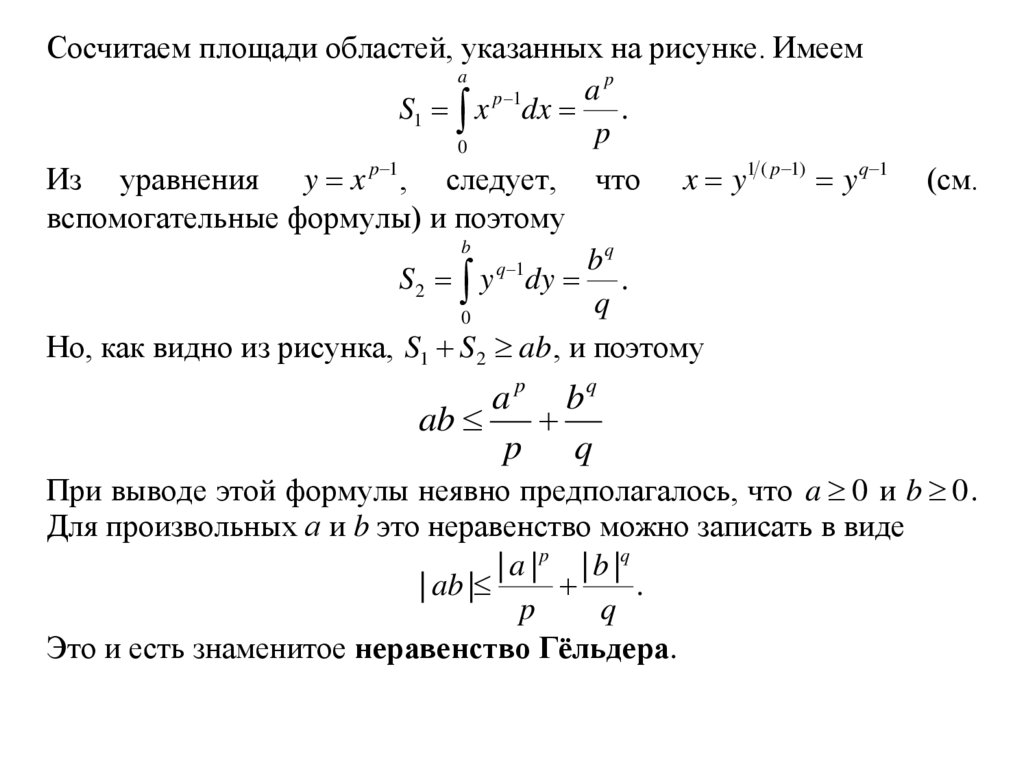 Неравенство Гёльдера в простейшей формеРассмотрим график функции y x p 1