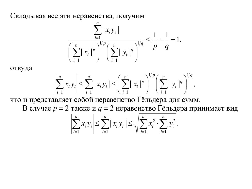 что и представляет собой неравенство Гёльдера для сумм.
