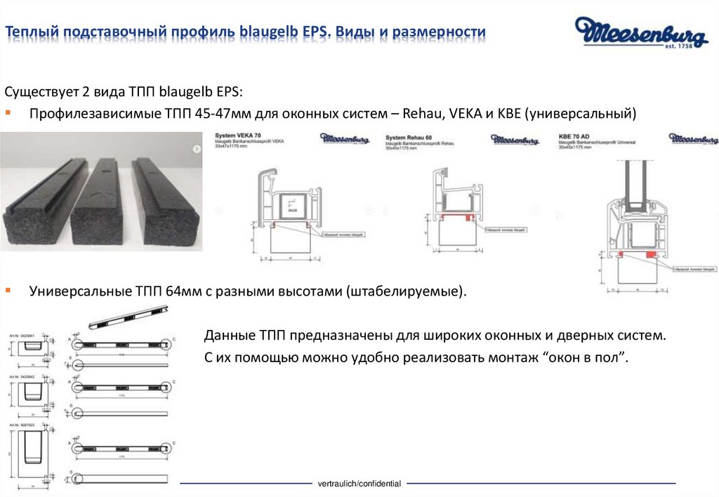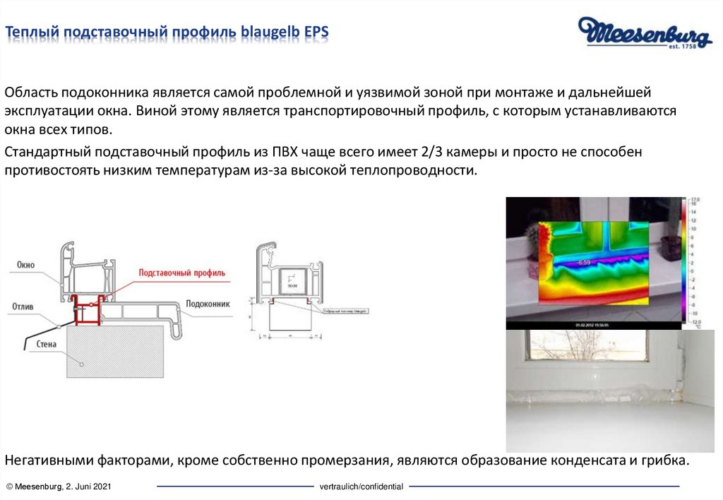 Теплый подставочный профиль blaugelb EPSОбласть подоконника является самой проблемной и уязвимой зоной при монтаже и дальнейшей