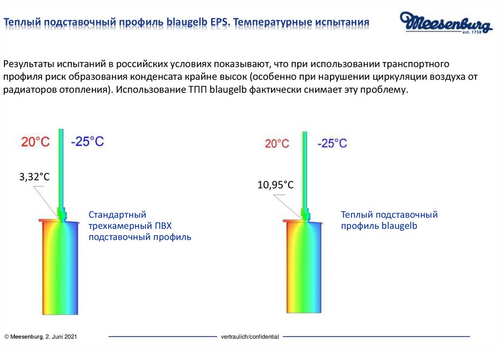 Теплый подставочный профиль blaugelb EPS. Температурные испытанияРезультаты испытаний в российских условиях показывают, что при использовании транспортного