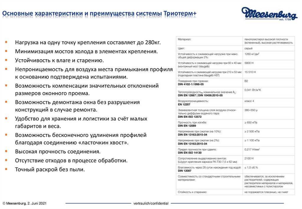 Основные характеристики и преимущества системы Триотерм+Нагрузка на одну точку крепления составляет до 280кг.