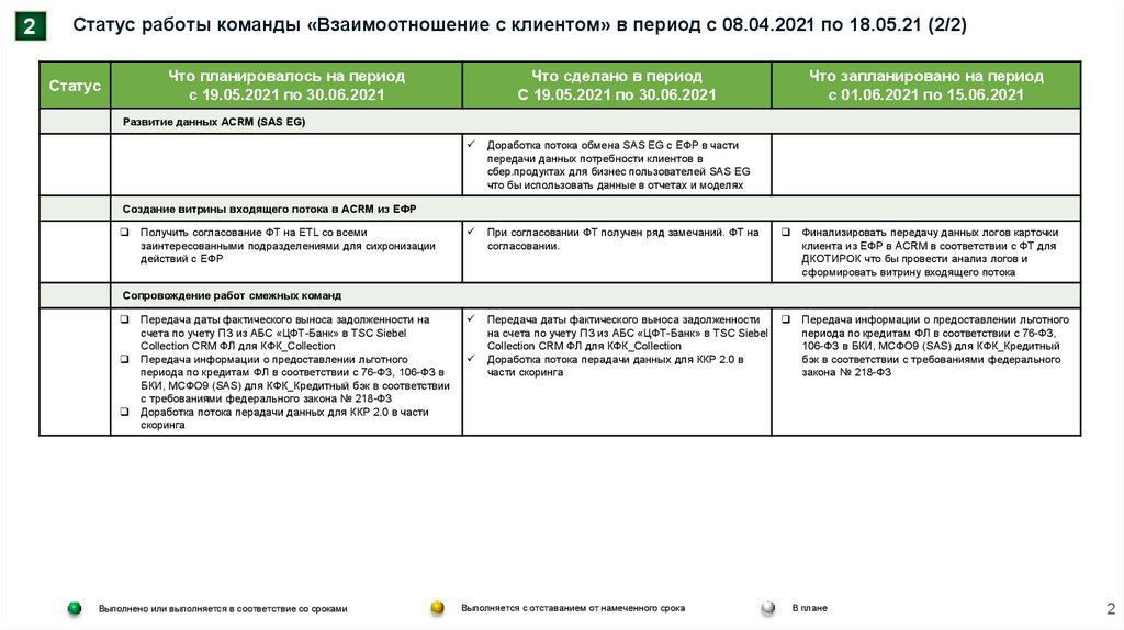 2Статус работы команды «Взаимоотношение с клиентом» в период с 08.04.2021 по 18.05.21 (2/2)