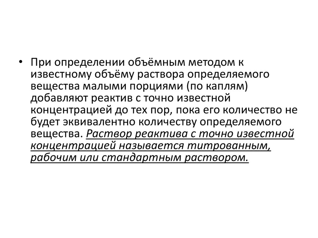 • При определении объёмным методом кизвестному объёму раствора определяемого