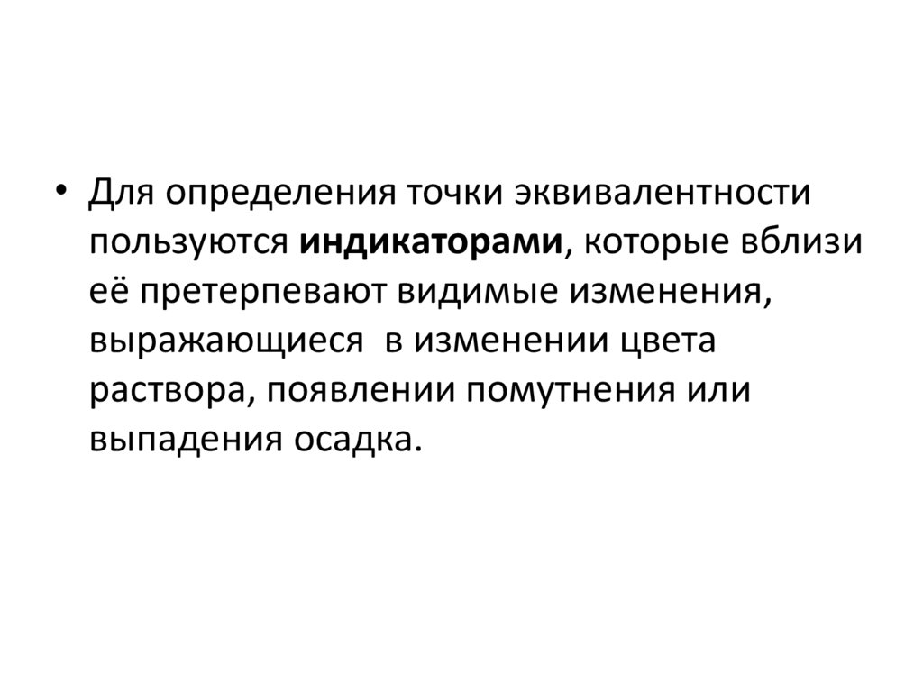 • Для определения точки эквивалентностипользуются индикаторами, которые вблизи