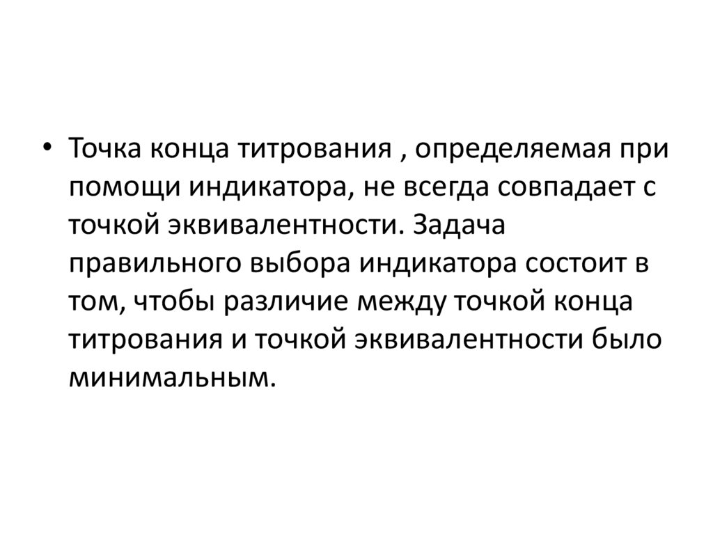 • Точка конца титрования , определяемая припомощи индикатора, не всегда совпадает с