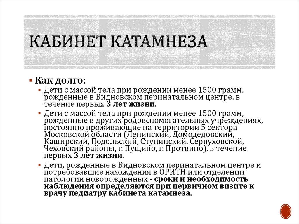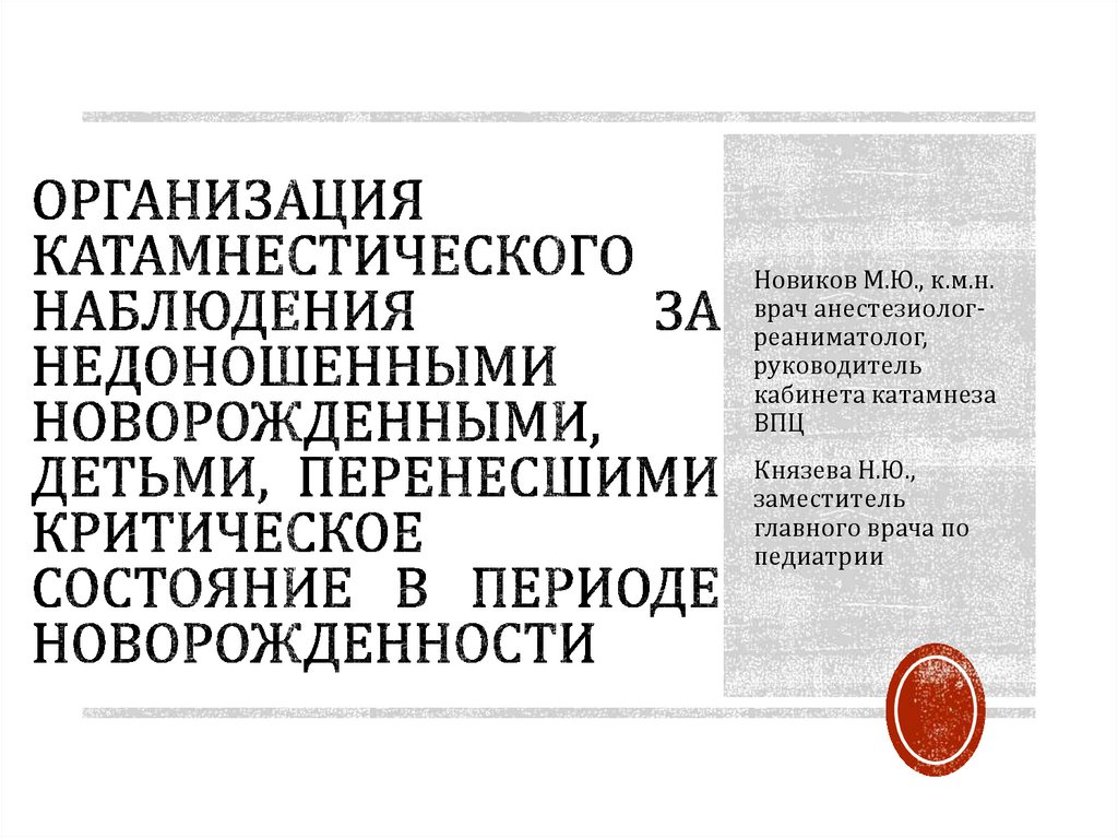 Организация катамнестического наблюдения за недоношенными новорожденными, детьми, перенесшими критическое состояние